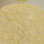 - Add flour, cornmeal, and salt to yeast mixture. The dough will be gooey.