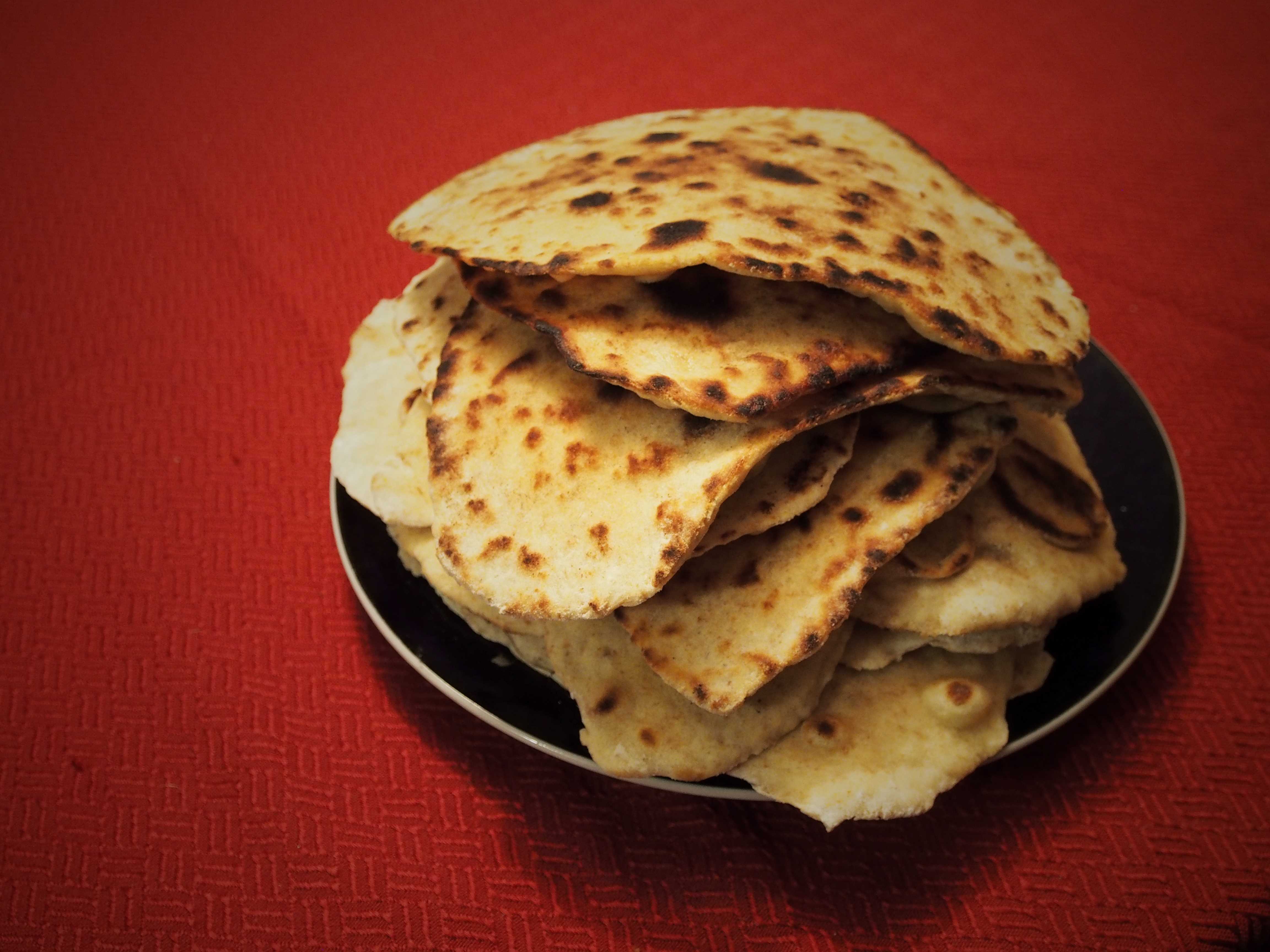 My best friend and I have been trying to make naan and while each attempt has turned out yummy, it’s never tasted like naan. We tried a bunch of variations on the leavening agents and different ways of cooking/baking the bread. This one has come the closest to that delicious delicious light fluffy flatbread called naan.