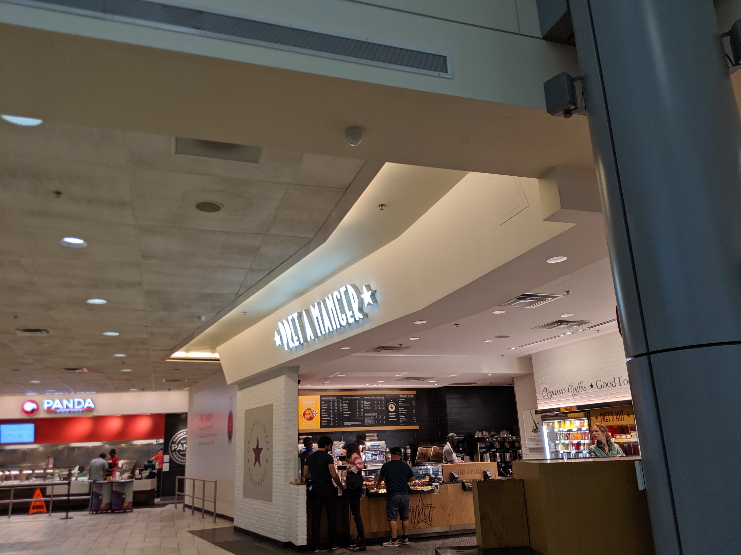 The travel plazas up and down route 95 on the east coast are great! They can be accessed from either direction, have clean bathrooms, gas stations, and a plethora of food options. This is where I came across Pret A Manger.